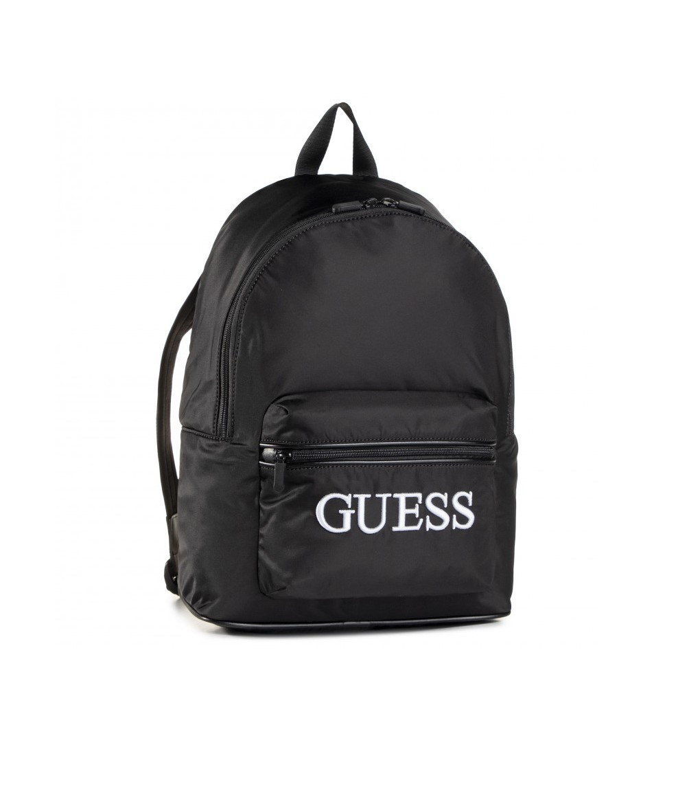 Pánský černý batoh značky GUESS. Stylový batoh má 2 libovolně nastavitelné ramenní popruhy, jednu velkou a jednu menší kapsu obě uzavíratelné na zip a malou kapsu zdobí bílý nápis značky.