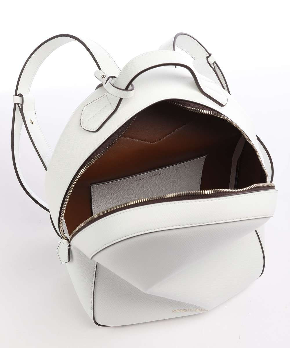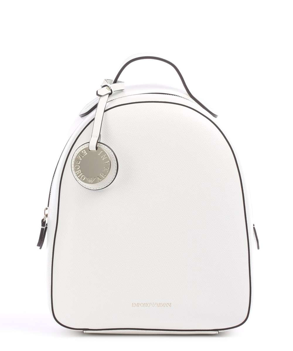 Bílý batoh Emporio Armani. Stylový batoh má jednu hlavní komoru a zlaté kování.