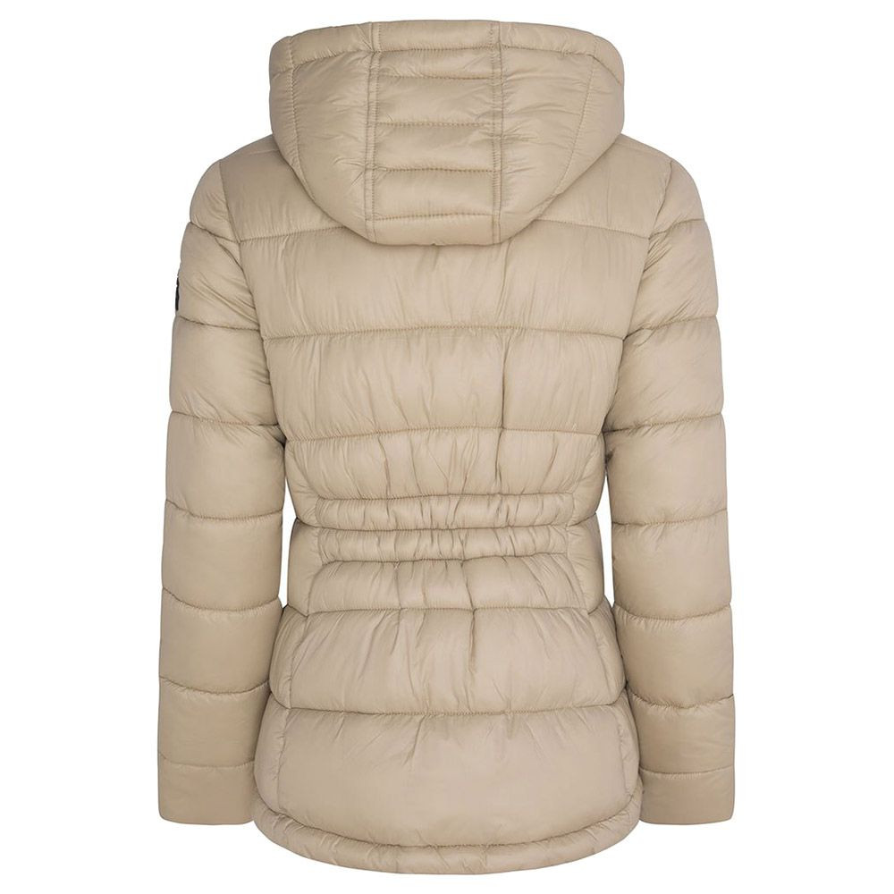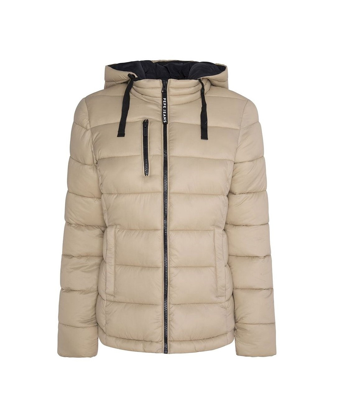 Dámská zimní bunda s kapucí. Stylová bunda Pepe Jeans v béžové barvě má 2 kapsy a zapíná se pomocí zipu.