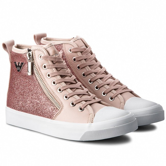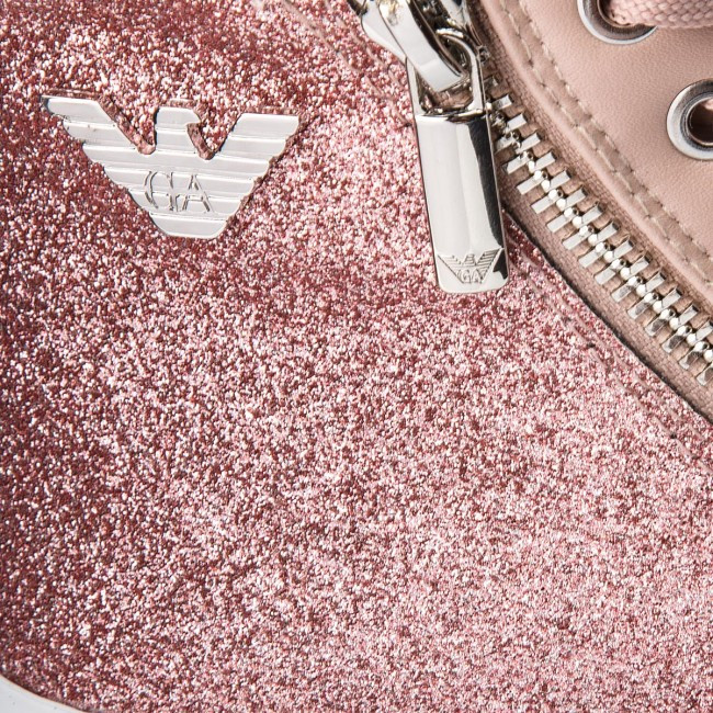 Trendy plátěnky Emporio Armani z kolekce podzim/zima 2018. Tento nový model má pohodlně profilovaný svršek ekologickou kůží a kvalitním materiálem. Trendy růžovou obuv zdobí brokát a jasně viditelné logo Emporio Armani na vnější straně každé boty. Boty jsou vhodné pro každodenní nošení.