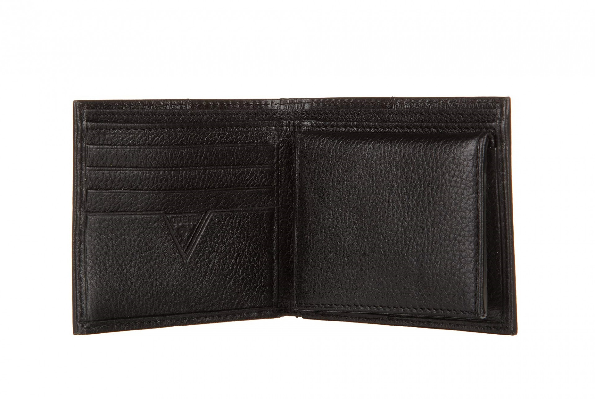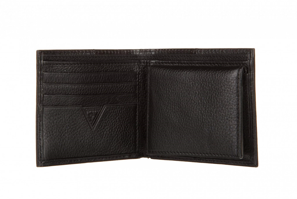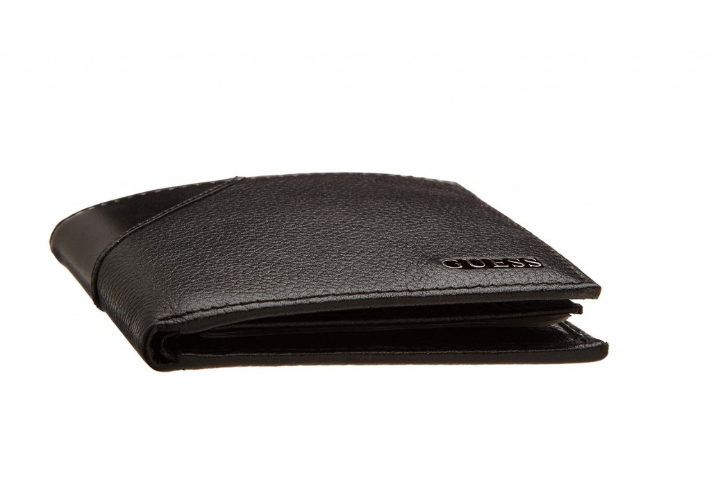 Černá, kožená, pánská peněženka GUESS. Kožená peněženka má 6 přihrádek pro platební karty včetně odjímatelné části na doklady s dalšími přihrádky včetně průsvitných. Peněženka má 2 velké přihrádky pro bankovky. Design peněženky je navržen tak, aby se pohodlně a bez problémů vešla do Vaší kapsy a nepřekážela Vám při každodenních činnostech. Peněženku zdobí na přední straně kovové logo GUESS. Peněženka nemá přihrádku na mince.