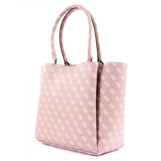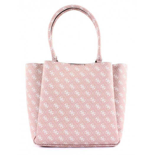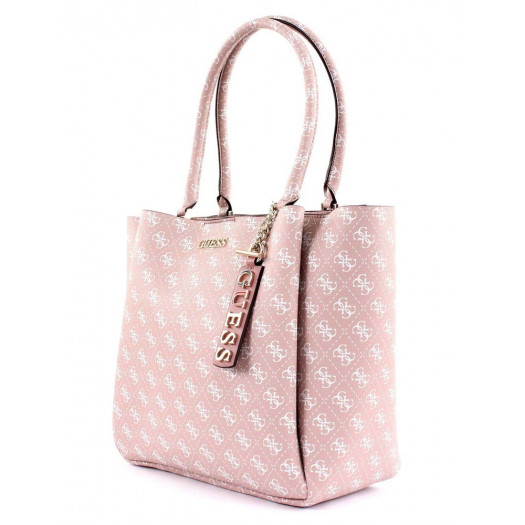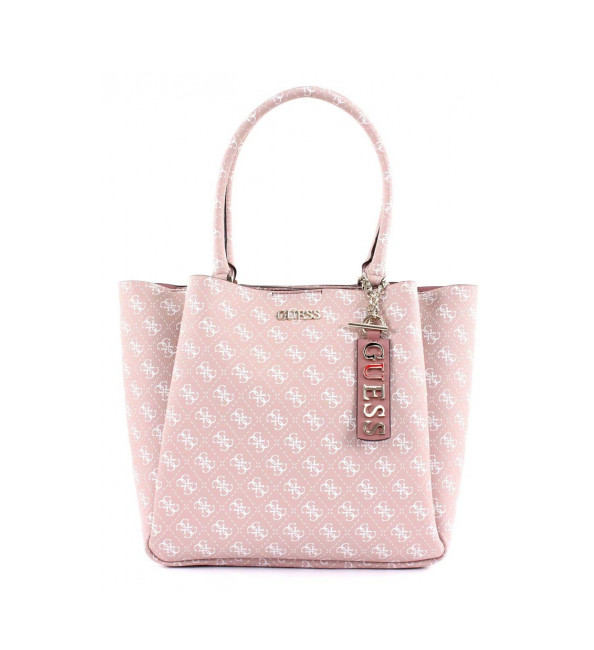 Elegantní světle růžová kabelka značky GUESS ke všem příležitostem. Kabelku je možno nosit v ruce i přes rameno a uzavírá se pomocí zipu a magnetky. Je opatřena 2 rukojeti a 1 odjímatelným ramenním popruhem s libovolně nastavitelnou délkouUvnitř kabelky se nachází velká kapse. Uvnitř kabelky se také nachází malé kapsy. Kabelku zdobí po celé délce motiv loga,  zlaté kování, přívěsek s logem GUESS a zlaté logo GUESS na přední straně.
