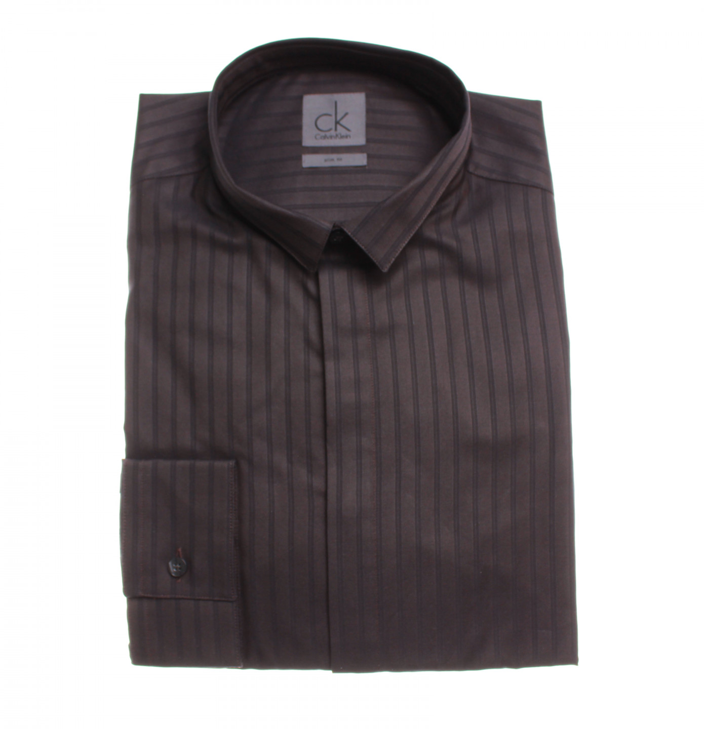 Pánská tmavě fialová košile značky Calvin Klein. Košile za zapíná pomocí knoflíků a zdobí ji proužky po celé své délce. Pohodlná košile se perfektně hodí ke všem příležitostem. Košile odpovídá menší velikosti. Doporučujeme vzít o velikost větší než je Vaše běžná konfekční velikost.