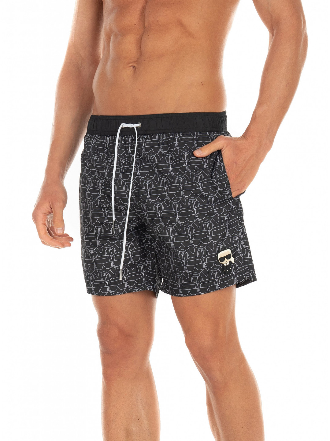 Pánské černé plavky značky Karl Lagerfeld. Plavky zdobí potisk a logo značky na přední straně.
