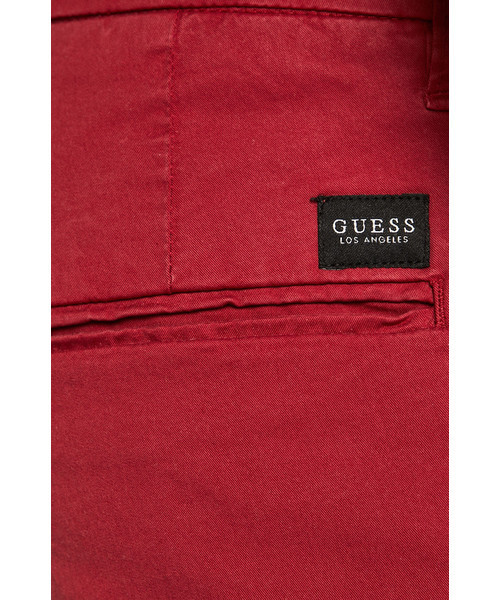 Pánské červené kraťasy značky GUESS. Kraťasy se zapínají pomocí zipu a knoflíku. Nad pravou zadní kapsou je zdobí logo GUESS. Módní kraťasy se perfektně hodí do práce, města i na zábavu.