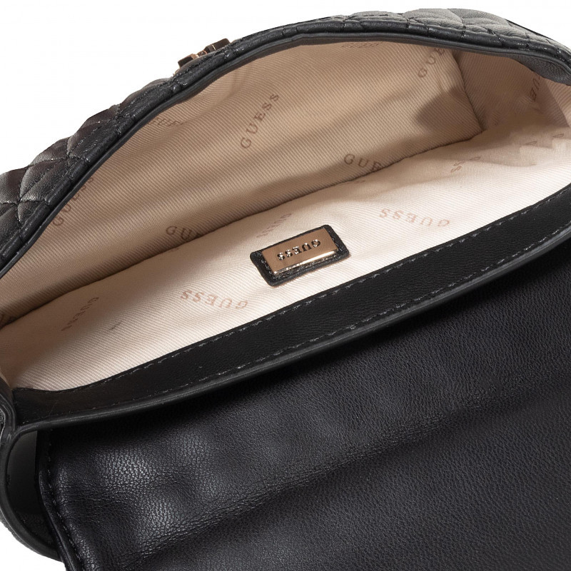 Dámská ledvinka značky GUESS. Ledvinku zdobí kovové logo Guess, má jednu kapsu a uzavírá se pomocí klopny a magnetického klipsu.