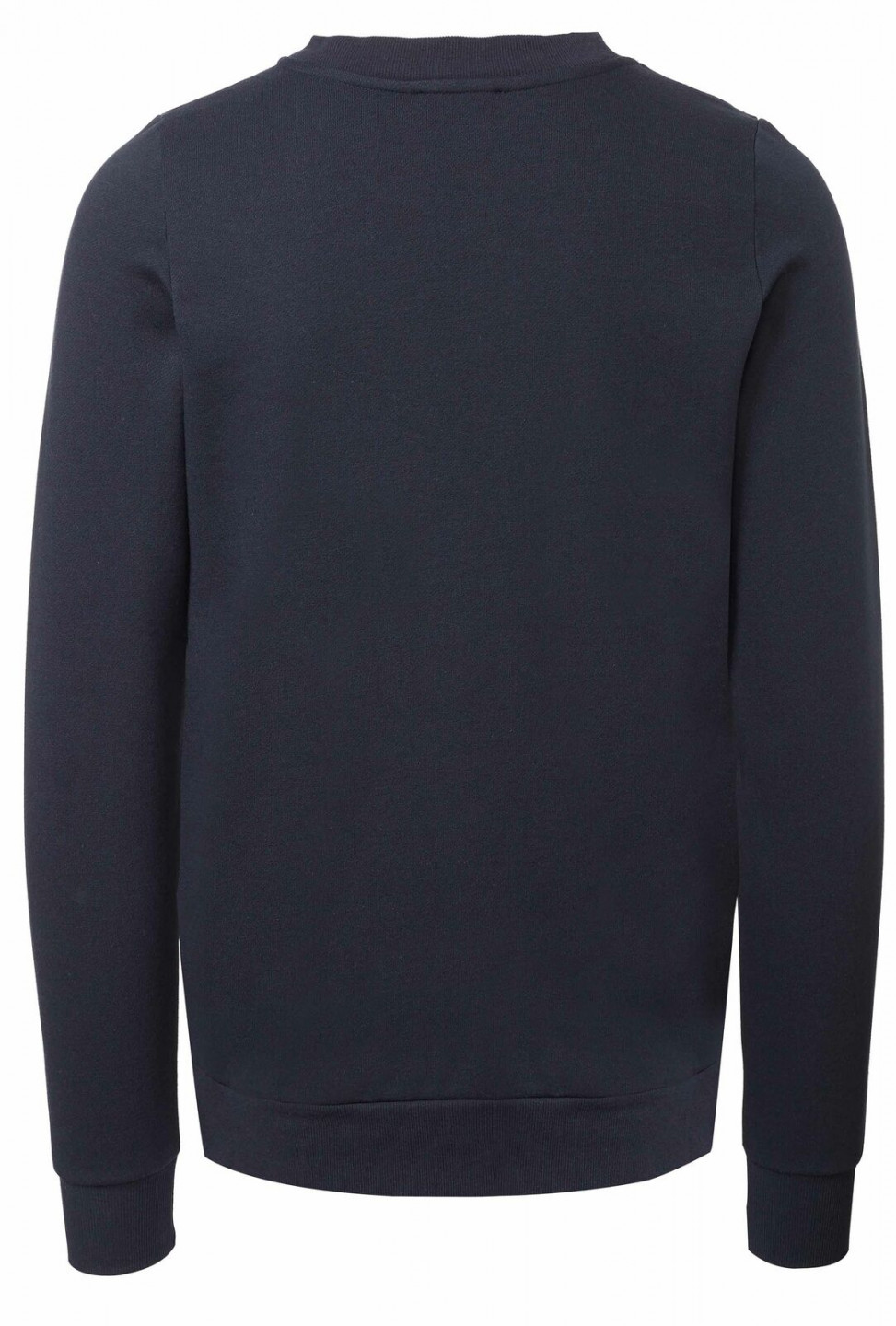 Dámská tmavě modrá mikina značky Emporio Armani. Módní mikina se obléká přes hlavu, zdobí ji na hrudi bílý znak a nápis Emporio Armani. Stylová mikina má v bocích rozparky.