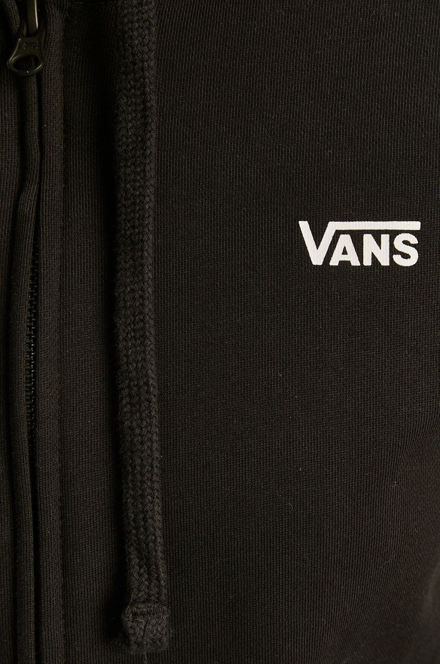 Dámská černá mikina Vans s kapucí. Stylovou mikinu zdobí bílý nápis Vans na hrudi a zapíná se pomocí zipu.