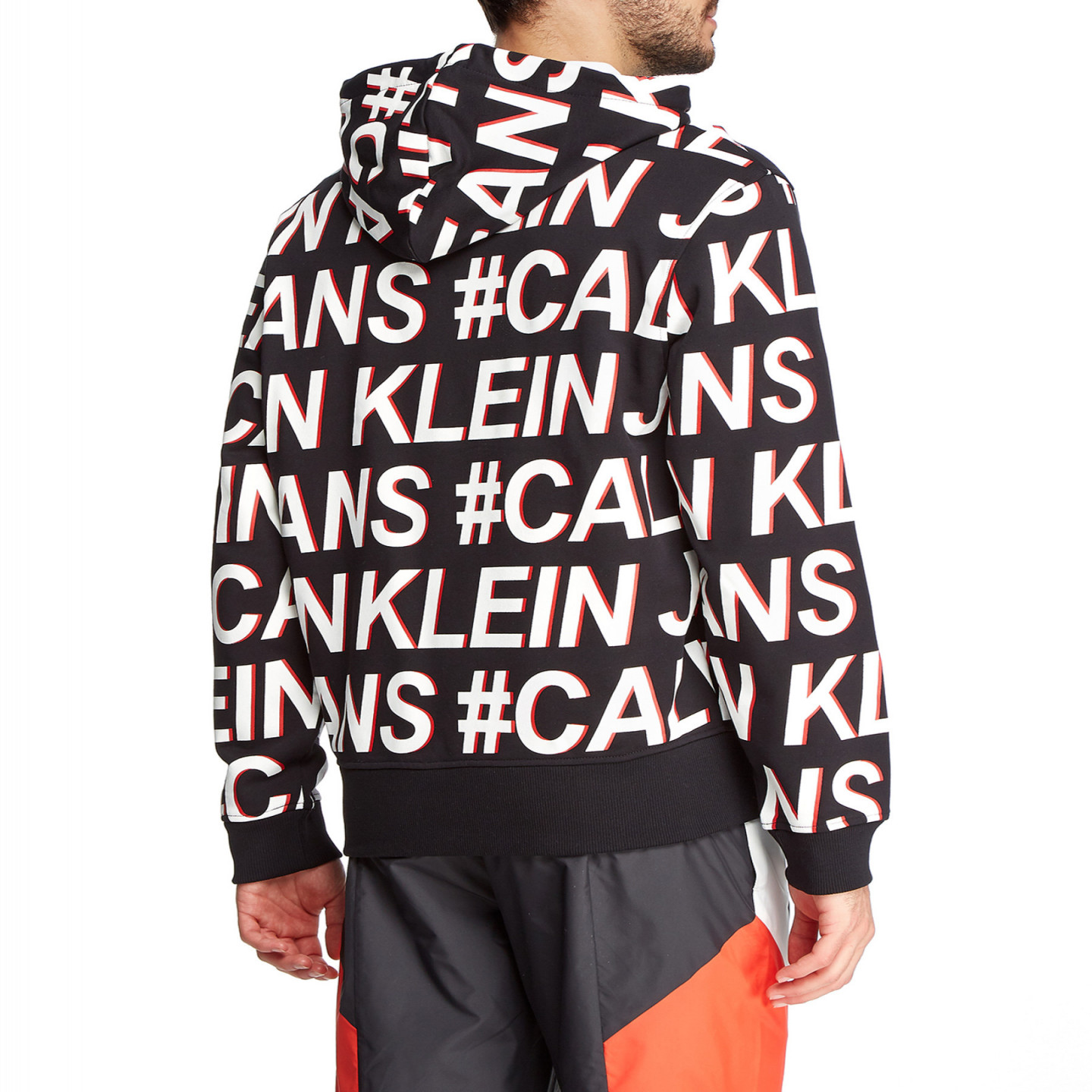 Calvin Klein pánská černá mikina s logem LOGO AOP HOODIE