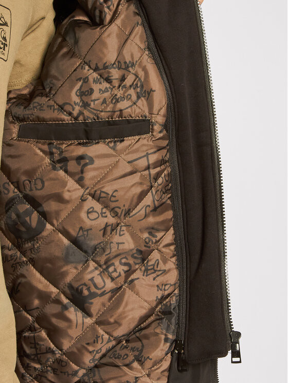 Pánská černá bunda bomber značky GUESS. Bundu zdobí logo na rameni, zapíná se na zip a má odnímatelnou kapuci.