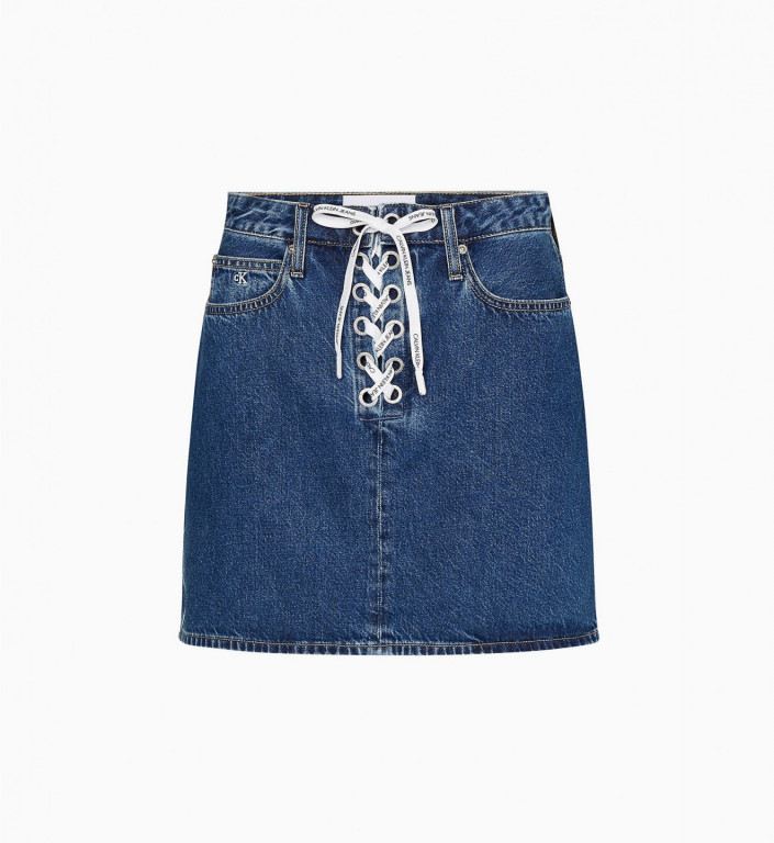 Dámská zelená sukně značky Tommy Jeans. Stylovou sukni zdobí štítek s logem na přední velké kapse a vlajkou Tommy Jeans na boku. Stylová sukně se zapínáním na knoflíky a kšandy.