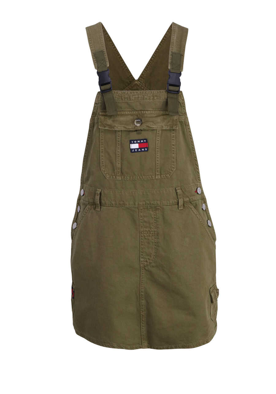 Tommy Jeans dámská zelená sukně DUNGAREE DRESS OLVT