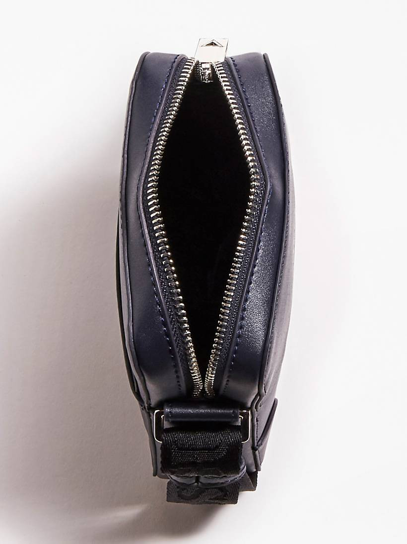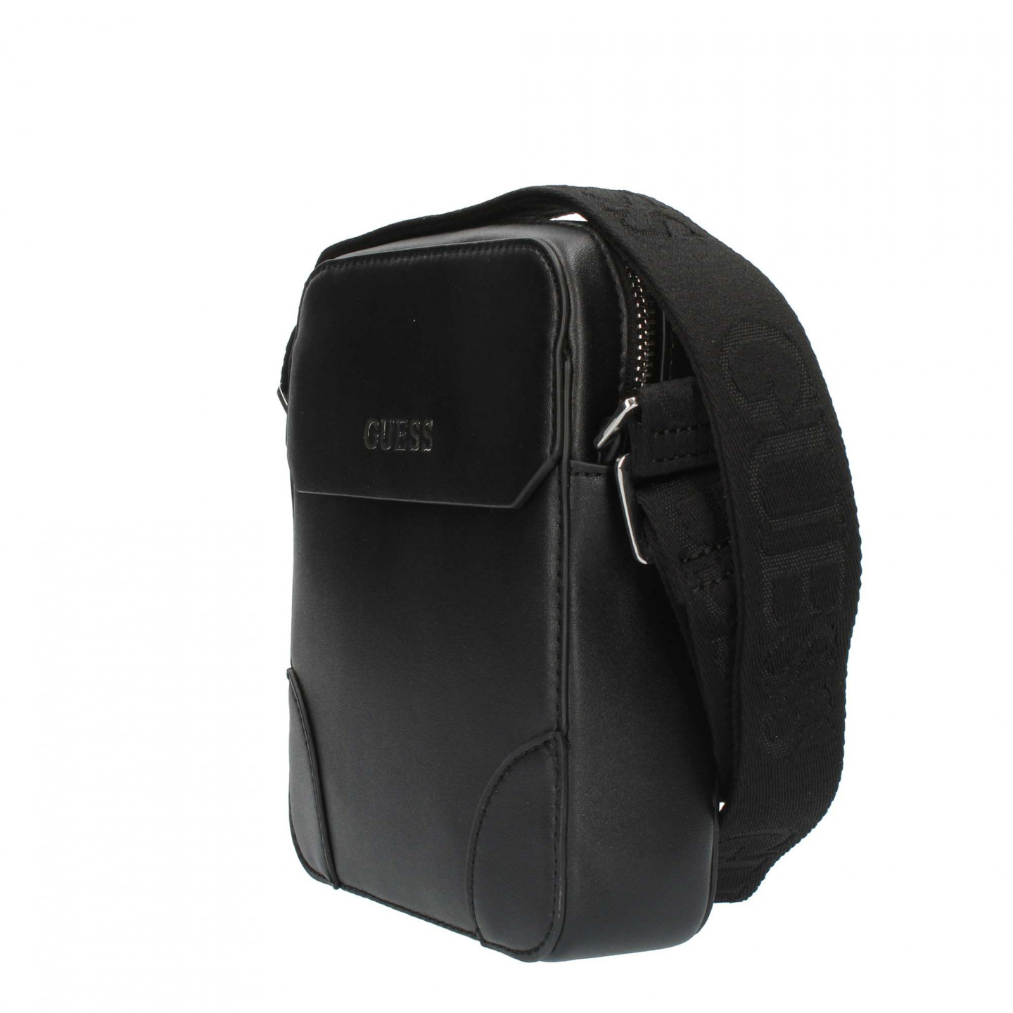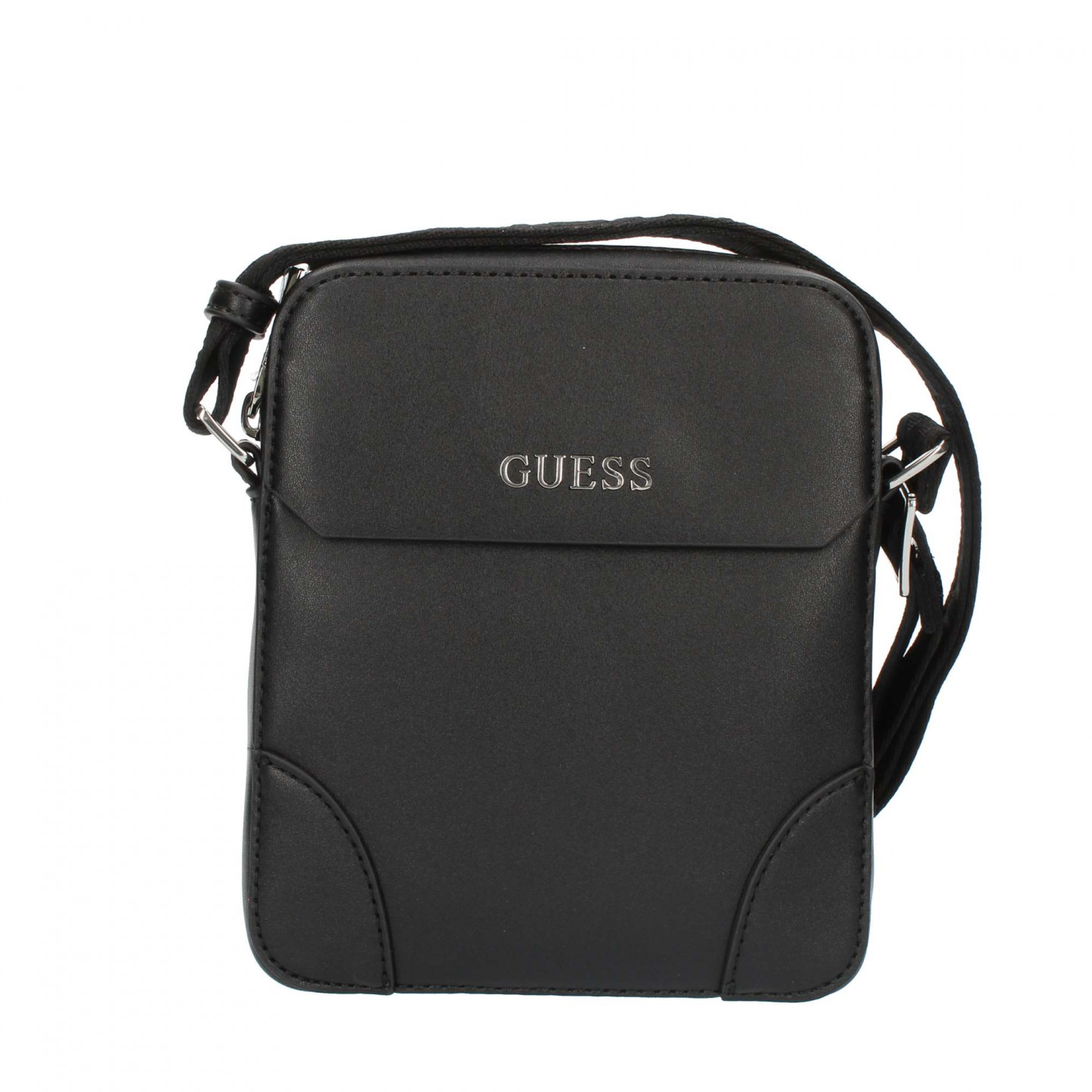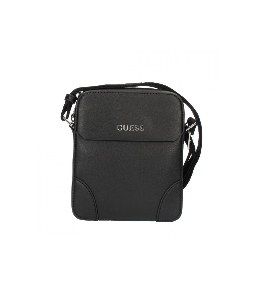 Elegantní černá crossbody brašna značky Guess. Brašna se uzavírá pomocí zipu, má 1 libovolně nastavitelný ramenní popruh a na přední straně kovový nápis Guess.