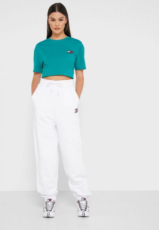 Tommy Jeans dámské bílé tepláky ORGANIC BADGE SWEATPANT