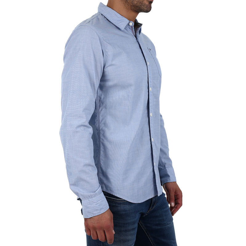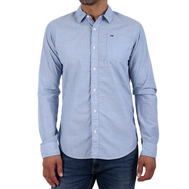 Jednobarevná, světle modrá pánská košile Tommy Hilfiger s dlouhým rukávem. Na hrudi kapsa s logem Tommy Hilfiger. Doporučená péče o košili: jemné praní při 40 °.
