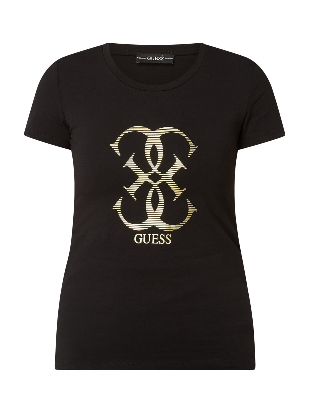 Dámské černé tričko GUESS s krátkým rukávem. Stylové tričko zdobí na hrudi logo GUESS.