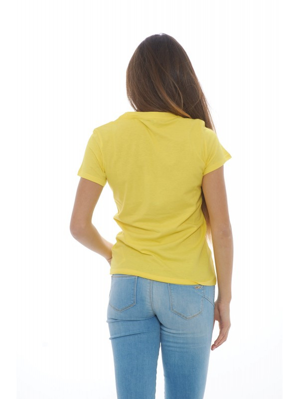 GUESS dámské žluté tričko s trojúhelníkem